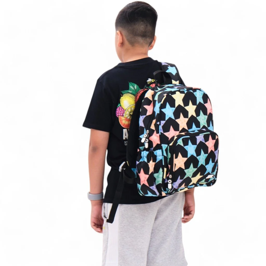 The All Stars Backpack is a burst of color and fun, featuring a vibrant print of bright, playful stars that kids of all ages will love!